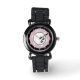 Personnalisez le style bracelet et bezel sur la montre de tennis unique de cette fille avec des initiales modifiables. Le design est un graphique circulaire en texte au centre en détails rose et noir et blanc. Il suffit de modifier les lettres dans l'éditeur Zazzle facile. Beaucoup d'autres options de style disponibles à choisir de pour customiser plus loin pour en faire un grand cadeau personnel pour un enfant.