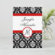 Monogramme de mariage Invitation en damas rouge vu