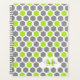 Planificateur personnalisé avec un motif hexagone géométrique en 3 couleurs (blanc, gris et vert citron) avec un nom et un monogramme en couleurs assorties placé en bas à droite.