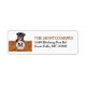 Le côté gauche de ces étiquettes d'adresse de retour présente l'aquarelle d'un chien Rottweiler qui regarde au-dessus d'un mur en brique rouge et brune. La Rottie porte un signe avec votre monogramme dessus. Votre texte personnalisé est en brun et gris foncé à droite.