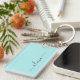 Porte-clés monogramme de nom d'écriture simple sarcelle bleu aqua. C'est le cadeau idéal pour un anniversaire sweet 16, un mariage, une douche de mariée, un anniversaire de mariage, une baby shower ou une soirée d'enterrement de vie de jeune fille pour quelqu'un qui aime le luxe glamour et les styles chics.