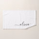 Serviettes de salle de bain à monogramme de nom de script simple noir et blanc. C'est le cadeau parfait pour un anniversaire des 16 ans, un mariage, une douche de mariée, un anniversaire, une douche de bébé ou une fête de bachelorette pour quelqu'un qui aime le luxe glamour et les styles chics.