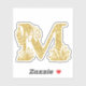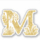 Élégante lettre de monogramme de parties scintillant en or M. Cette lettre de parties scintillant en monogramme M initial est un magnifique ton doré brillant et brillant. De jolis feuilles de fleurs montrent des occasions spéciales et des célébrations. Un autocollant de look moderne peut être utilisé sur les cartes de voeux, invitations de mariage, cartes de remerciement, papeterie, emballage cadeau et beaucoup plus.