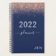 2022 Rose Gold - Blush Pink and Navy Blue Sparkle Parties scintillant Nom du monogramme ou Carnet initial du calendrier spiral. Cela rend le cadeau parfait pour 16 ans, mariage, douche nuptiale, anniversaire, baby shower ou bachelorette pour quelqu'un qui aime le luxe glam et les styles chic.