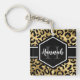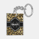 Porte - clé empreinte de léopard chic en or et noir avec un nom personnalisé et modèle monogramme. Un motif poster de animal de safari mignon et branché, arrière - plan surmonté d'un petit morceau de personnalisation.