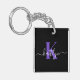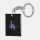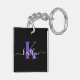 Ce porte - clé noir moderne avec votre prénom dans une police de script tendance en blanc et votre première initiale dans une police de casquette moderne en violet est parfait pour vos clés. Design, moderne et très classique.