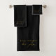 Une belle conception en noir et or incorporant la typographie de police de script signature. Un ensemble de serviettes de bain classe et élégant, idéal pour tous. Customisez le texte en or monogramme et la typographie script de la serviette de bain et faites-le vous-même!