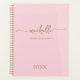 Agenda personnalisé élégant et moderne de couleur rose blush doré avec monogramme et nom en écriture script personnalisée pour 2023 ou toute autre année. Ce design minimaliste et délicat de couleur unie présente votre prénom dans une jolie police calligraphique avec queue en arabesque (ou typographie), votre nom complet (ou nom de famille) et l'année en doré sur fond rose bébé ou rose blush clair. Facile à personnaliser. Cadeau féminin idéal pour un anniversaire, une fête de mariage, la fête des mères, un mariage, une entreprise, un sweet 16, la rentrée scolaire, un diplôme, un usage professionnel et pour quiconque aime les choses minimalistes et épurées.