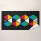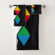 Ajoutez un style audacieux et éclatant à votre décor de salle de bain ou de toilette avec ce kit de serviettes de bain monogramme moderne et coloré. Le design montre une série de triangles géométriques dans un thème de couleur célèbre de bleu, jaune, noir, vert, rouge plus blanc, contre un riche arrière - plan noir. Aux deux extrémités, il y a un MONOGRAM PERSONNALISABLE, que vous pouvez personnaliser avec votre propre initiale. Choisissez parmi une large sélection de cadeaux assortis conçus par Berean Designs.