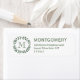 Simple Olive Green Laurel Wreath Monogramme personnalisé Adresse de retour Étiquettes. Personnaliser avec une initiale. Typographie vintage et élégante au centre d'une couronne d'art populaire et rustique. Timeless et classique nom et adresse typographie. Tout le texte peut être customisé. L'illustration tendance de la verdure de la vigne a été inspirée par la broderie vintage, les cartes de voeux rétro et le style simple tatouage art. Parfait pour les invitations à des amis et à la famille, nouvelles adresses / annonces émouvantes, merci notes, artisanat, cartes de fin de année, ou comme une idée cadeau unique et de bon goût pour mariage, douche nuptiale, ou fête de ménage.