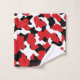 Serviette de bain monogramme design, tendance, audacieuse à double impression de vache, en noir et rouge. Au centre, il y a un cercle noir avec des bordures rouges et blanches. À l'intérieur du cercle, il y a un substituant rouge en lettres monogramme et nom dans la typographie serif blanche, qui sont tous deux CUSTOMIZABLE afin que vous puissiez ajouter votre nom et votre initiale. Quand il est temps de repenser la décoration de la salle de bain, vous ne pouvez pas vous tromper avec des motifs audacieux... Choisissez parmi une large sélection de cadeaux assortis de Berean Designs.