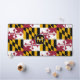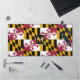 Ce somptueux tapis de bureau présente le drapeau d'état du Maryland motif en or, noir, rouge et blanc distinctif comme arrière - plan. Le centre porte votre monogramme customisé en or assorti sur une bannière noire bordée d'une mince bordure blanche. Votre nom est écrit en blanc sur le monogramme. Montrez votre fierté d'état du Maryland !