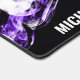 Personnalisez avec votre nom. Flammes triangulaires éclatantes violettes électrisantes. Maille géométrique triangulaire violet, noir et blanc avec fumée abstraite et tirage étincelant.