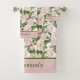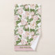 De belles fleurs roses et vertes élégantes sur cet ensemble de serviettes de bain. L'ensemble comprend une serviette pour les mains, une serviette de bain et un gant de toilette. Monogramme les trois. Fait un excellent cadeau de mariage pour un cadeau de douche de mariée.
