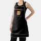 Tablier design monogrammed exclusif de luxe avec un carré de parties scintillant métallique en cuivre faux or et lignes sur un arrière - plan noir solide élégant et élégant. ++++++++++++ Personnalisez-le avec votre nom de famille ou votre nom de famille et votre nom monographique initial.