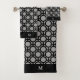 Monogramme, cercles abstraits noirs et lignes géométriques sur noir et gris.