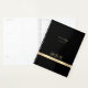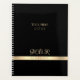Personnalisez ce Black Planner avec votre monogramme en écriture or fantaisie, nom, titre, année avec les informations de contact et le texte supplémentaire sur le dos. Texte en or sur arrière - plan noir avec rayures or brossé.