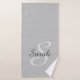 Une combinaison de nom et d'initiale monogramme magnifiquement conçue pour être personnalisée sur une serviette de bain en polyester et coton de haute qualité. Grand nom gris clair initial et nom de fusain sur un brillant arrière - plan gris moyen. Conception en bas 1/3 de la serviette pour l'attrait esthétique. Ajoutez une touche personnelle à votre salle de bains. Un grand cadeau de ménage, d'anniversaire ou de fête des mères pour quelqu'un de spécial.