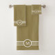 Élégant monogramme et rayures blanches sur le set de serviettes de bain beige. Monogramme seulement d'un côté.