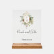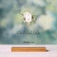 Ce joli panneau acrylique d'hiver comprend des bouquets de roses et de fleurs d'ivoire, des baies rouges, des flocons de neige de sapin et d'or entourant un élégant étiquette d'or pour votre monogramme. Inclut les champs de texte modifiables.