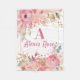 Blanche Florale rose, Fleurs d'Aquarelle rose Rose Gold Name Blanket, Monogramme Bébé Blanche personnalisée, Baby shower Cadeau