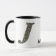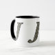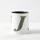 Élégante lettre de monogramme J remplie de fines fleurs d'hydrangée blanche, café ou tasse de thé. Cliquez sur Personnaliser pour ajouter du texte. Super idée cadeau. Cette image est disponible sur de nombreux produits dans ma galerie.