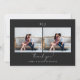 Ce carte de remerciements moderne noir deux mariage photo est doté de lettrage manuel et d'un simple monogramme.