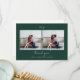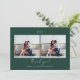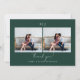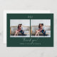 Ce carte de remerciements moderne vert foncé à deux mariage photo est doté de lettres à la main et d'un simple monogramme.