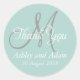Stickers Monogramme pour Mariages. Ce design élégant et simple est parfait pour les faveurs de mariage et les cartes de remerciements. Elke Clarke ©2011. Les mots "merci" dans une police de caractères blanc, les noms de mariée et de mariée et la date de mariage en texte blanc, monogramme gris ou la conception initiale sur un arrière - plan vert menthe. Pour d'autres couleurs, contactez luxuryweddinginvitations@gmail.com
