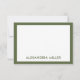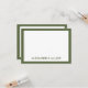Le design de la carte à billet plat à double face intemporelle présente un design monogramme vert olive et blanc avec nom dans les tiers inférieurs, encadré en olive. Une typographie élégante qui peut être personnalisée avec votre nom ou texte personnalisé. L'espace pour votre note manuscrite est inclus à l'avant et à l'arrière. Cette carte est disponible en format papier et numérique, vous permettant de choisir l'option qui vous convient.