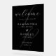 Panneau d'accueil mariage noir et blanc avec design de typographie minimaliste moderne.