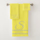 Monogramme moderne et élégant jaune et gris Initiale et nom Ensemble de serviettes de bain, design par Sandy Closs