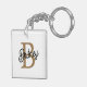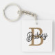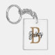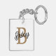 Le moderne Elegant Monogram Name Black Gold Script Porte - clé combine une base noire élégante avec un script doré luxueux pour présenter votre monogramme et votre nom. Ce porte - clé ajoute une touche de sophistication à vos objets de base de tous les jours, offrant à la fois un accessoire pratique et élégant. L'élégant script or se distingue par son arrière - plan noir, ce qui en fait un cadeau personnalisé parfait ou un ajout chic à votre propre porte-clés.