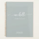 Stylish Modern Feminine Sage Green Glam Monogramme Nom Script Signature Personnalisé Personnalisé 2024 ou n'importe quelle année Planificateur. Ce design minimaliste et délicat en couleur unie, avec votre prénom dans une jolie calligraphie de police en queue d'écharpe (ou typographie), nom complet (ou nom de famille) et année sur arrière - plan vert sauge ou vert poussiéreux. Facile à customiser. Grand cadeau féminin pour anniversaire, douche nuptiale, jour de la mère, mariage, affaires, 16 ans doux, retour à l’école, diplôme, travail professionnel et pour toute personne qui aime les choses propres minimalistes.