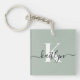 Ce porte - clé moderne sauge vert avec votre prénom dans une police de script tendance en noir et votre première initiale dans une police casquette moderne en blanc est parfait pour vos clés. C'est design, tendance et pourtant très classique.