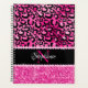 Motif empreinte de léopard noir et rose chaud glamour sur le dessus. Faux parties scintillant rose chaud de luxe sur le fond. Il y a une superposition de filtre appliquée aux faux strass brillants. Créez votre propre planificateur monogramme personnalisé de calligraphie chic girly. Choisissez votre style de police de calligraphie contemporaine préféré.
