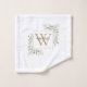 Elégante aquarelle eucalyptus verdure monogramme nom serviettes de bain ensemble avec un monogramme or initial. Conçu par Thisisnotme©