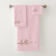 Élégant Chic Moderne Monogramme Or Nom Signature Script Personnalisé Blush Pink Serviette De Bain Couché. Ce design délicat avec nom personnalisé dans un cursif lettré à la main en caractères calligraphie (ou typographie) en or sur rose rousse ou rose bébé arrière - plan de couleur. Grand cadeau de ménage féminin élégant, aussi pour anniversaire, mariage, douche nuptiale, fête de 16 ans, fête de la mère, fête de bachelorette, cadeau d’anniversaire et pour la fête de remise de diplômes et C’est pour la fille qui aime les choses élégantes.