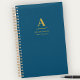 Planificateur professionnel monogramme moderne. Le design combine typographie de style or unique et fond bleu indigo. Comprend deux lignes de texte personnalisé.