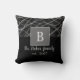 monogramme personnalisé coussin gris et noir design abstrait avec du texte pour personnaliser pour un décor maison unique. Copyright original de l'art abstrait Ann Powell tous droits réservés.