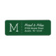Étiquettes d'adresse de retour personnalisées avec une typographie simple et élégante sur un arrière - plan de couleur solide. Personnalisez-le avec votre initiale monogramme, nom et adresse ou tout autre texte personnalisé. Cliquez sur Customiser pour modifier les polices de texte et les couleurs, redimensionner ou déplacer du texte pour créer un design étiquette unique. Parfait pour envoyer des invitations de mariage ou tout autre papier à lettres personnalisé!