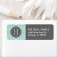 Étiquettes d'adresse de retour personnalisées mignonnes. Design dispose d'un motif à pois tendance avec votre monogramme initial dans un cadre circulaire. Cliquez sur Customiser pour modifier les polices de texte et les couleurs, ou ajoutez votre propre texte et vos propres images pour créer un design unique d'un genre.