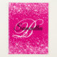 Faux parties scintillant rose brillant avec éclat contre un arrière - plan de couleur solide rose chaud. On peut customiser le monogramme de calligraphie noir et blanc au centre. Tous les éléments scintillants et brillants de ce design girly moderne sont des graphismes numériques. Un cadeau précieux pour la nouvelle année.
