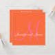 arrière - plan orangé moderne avec Monogramme rose et noms de mariées et mariées blanches Invitations de mariage. Monogramme Faire-part de mariage Conception par Elke Clarke ©2008. Customisez avec votre monogramme, vos noms et vos couleurs mariages. Ajoutez toutes vos informations mariages au verso de la carte en utilisant les invites de menu faciles à utiliser de Zazzle. Aucune carte RSVP requise. Vient avec une enveloppe blanche vierge.