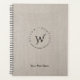 Un beau design monographique utilisant votre nom et initiale en forme de cercle classe. Une texture en lin beige dans l'arrière - plan aux accents noirs crée un style unique. Customisez le monogramme et le texte et faites-le vous-même. Fournitures de bureau et de papeterie d'école idéales. Autres couleurs de lin offertes dans ce design.