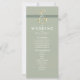 Simple, contemporain, minimaliste sauge programme de mariage vert avec calligraphie moderne et élégante dorure.