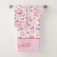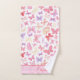 Beaux papillons roses, violets et jaunes sur cet ensemble de serviettes de bain monogrammées. La belle écriture peut être utilisée pour le prénom ou le nom de famille ou les initiales. Ces ensembles de serviettes font de superbes cadeaux de bains de mariage ou de mariage.