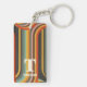 Ajoutez une touche rétro à votre routine quotidienne ! Personnalisez ce porte - clé personnalisé avec votre nom et votre monogramme. Doté d'une ligne abstraite design dans des tons chauds d'or, d'orange, de turquoise et de marron.