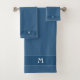 Monogramme sur l'ensemble de serviettes de bain bleu prime.
