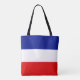 Monogramme sur Sac fourre-tout rayé bleu rouge et blanc. Monogramme seulement sur le côté avant.